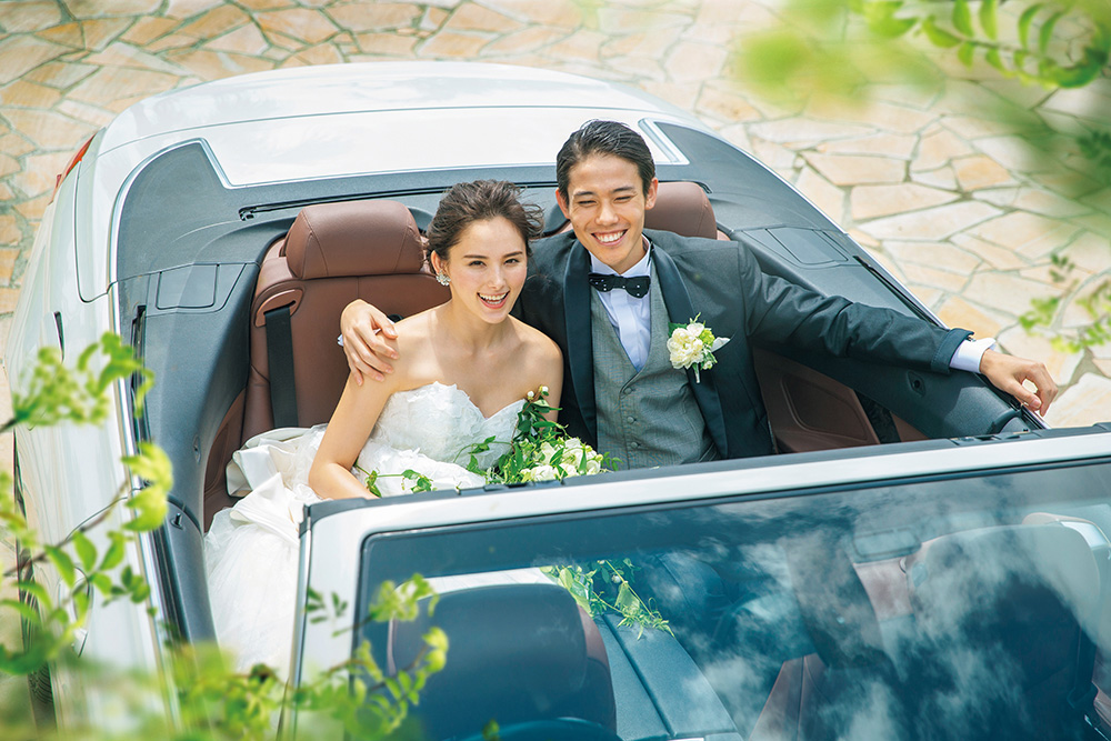 - 搭乘敞篷跑車抵達教堂,是令人嚮往的一幕