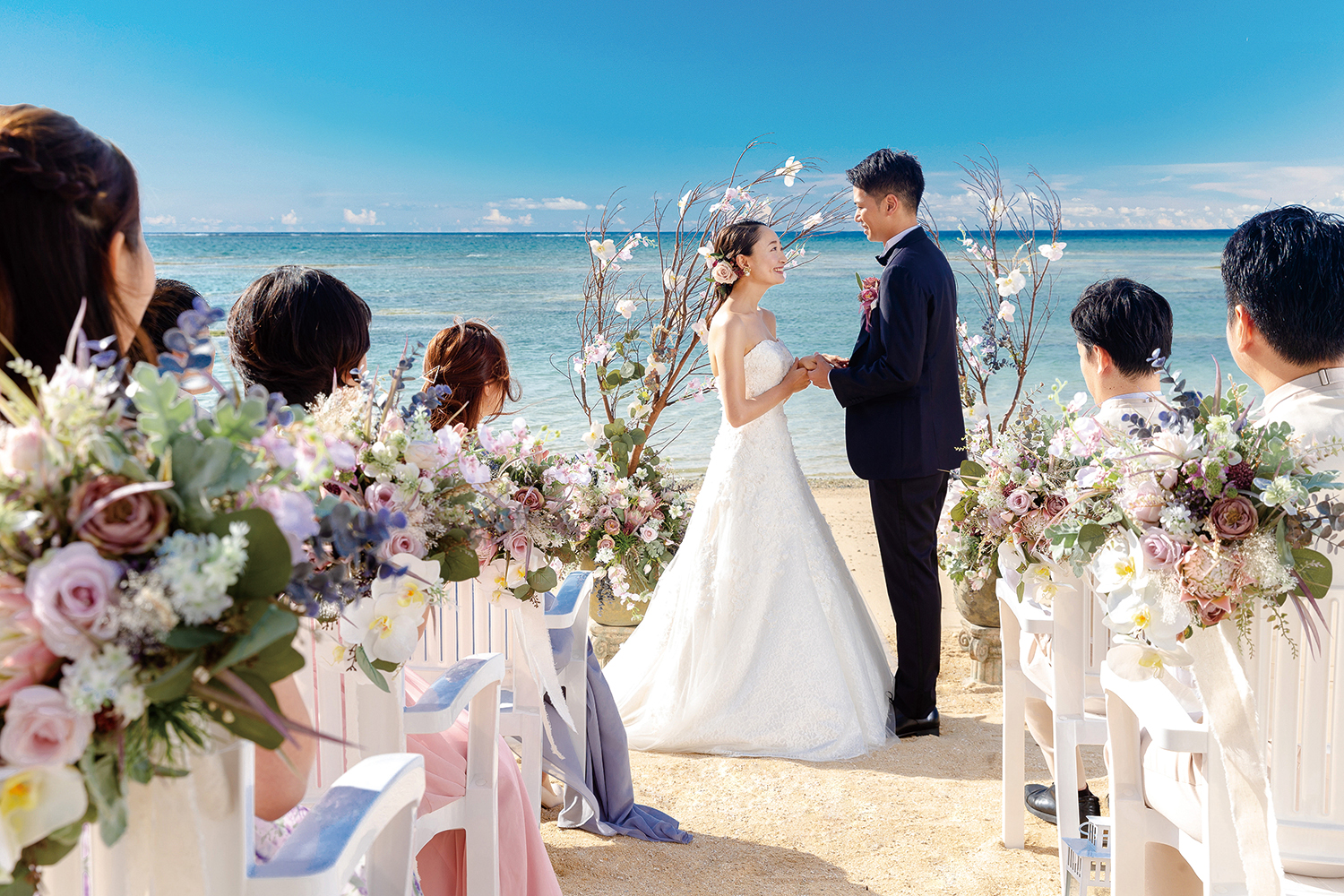 一日一組限定で執り行われる伽藍ウェディングは、ゆったりとした時に満たされながら、おふたり そしてご家族やゲストとの絆を深めていただけることでしょう。波の音に包まれながら、誓い合う永久の愛を。