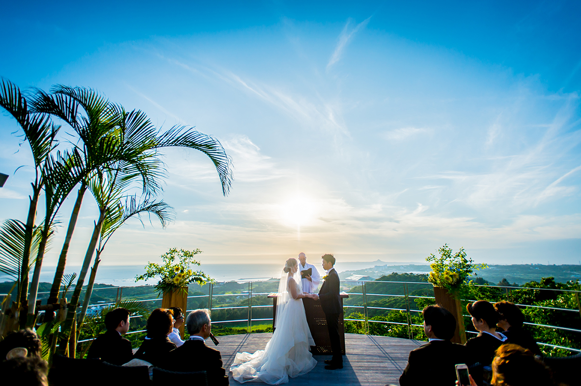 海と瀬底島、瀬底大橋を高台から見下ろせる好ロケーションで、さらに素敵なウエディングに。