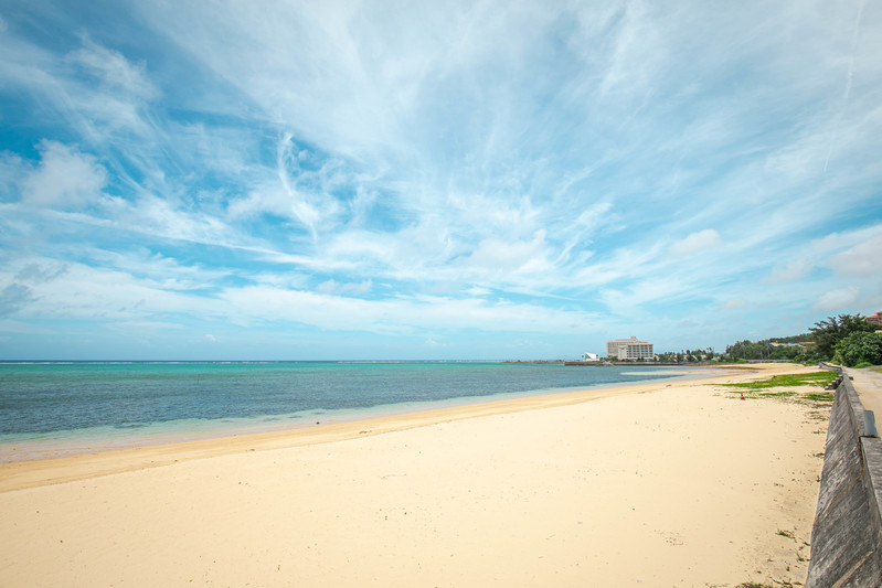 從海堤走下去,就是寬闊的白色沙灘。雖然四周較開闊且有酒店在旁,少了些謐靜的感覺,但也是個能放鬆身心的場所。