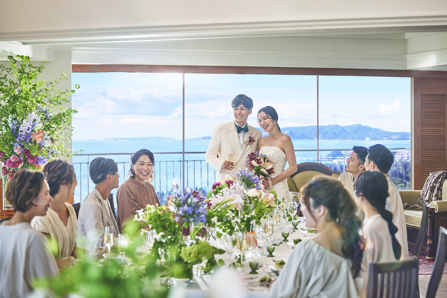 - 青い海と豊かなグリーンに囲まれた絶景が目の前に広がる抜群のロケーションが魅力の会場。