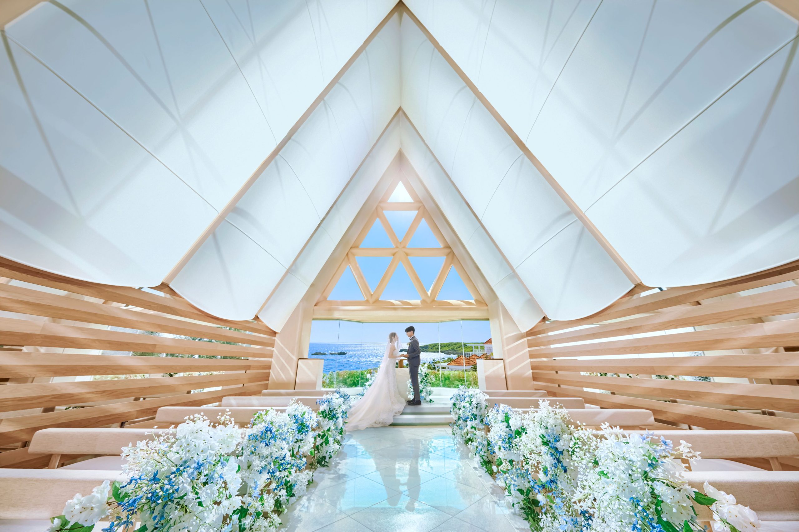 やわらかな自然光が降りそそぐ祭壇で、 青い空と海を眺めながら約束を交わす。遥か大海原へと出航する船を模した独立型のチャペルが、聖なるセレモニーの舞台です。
