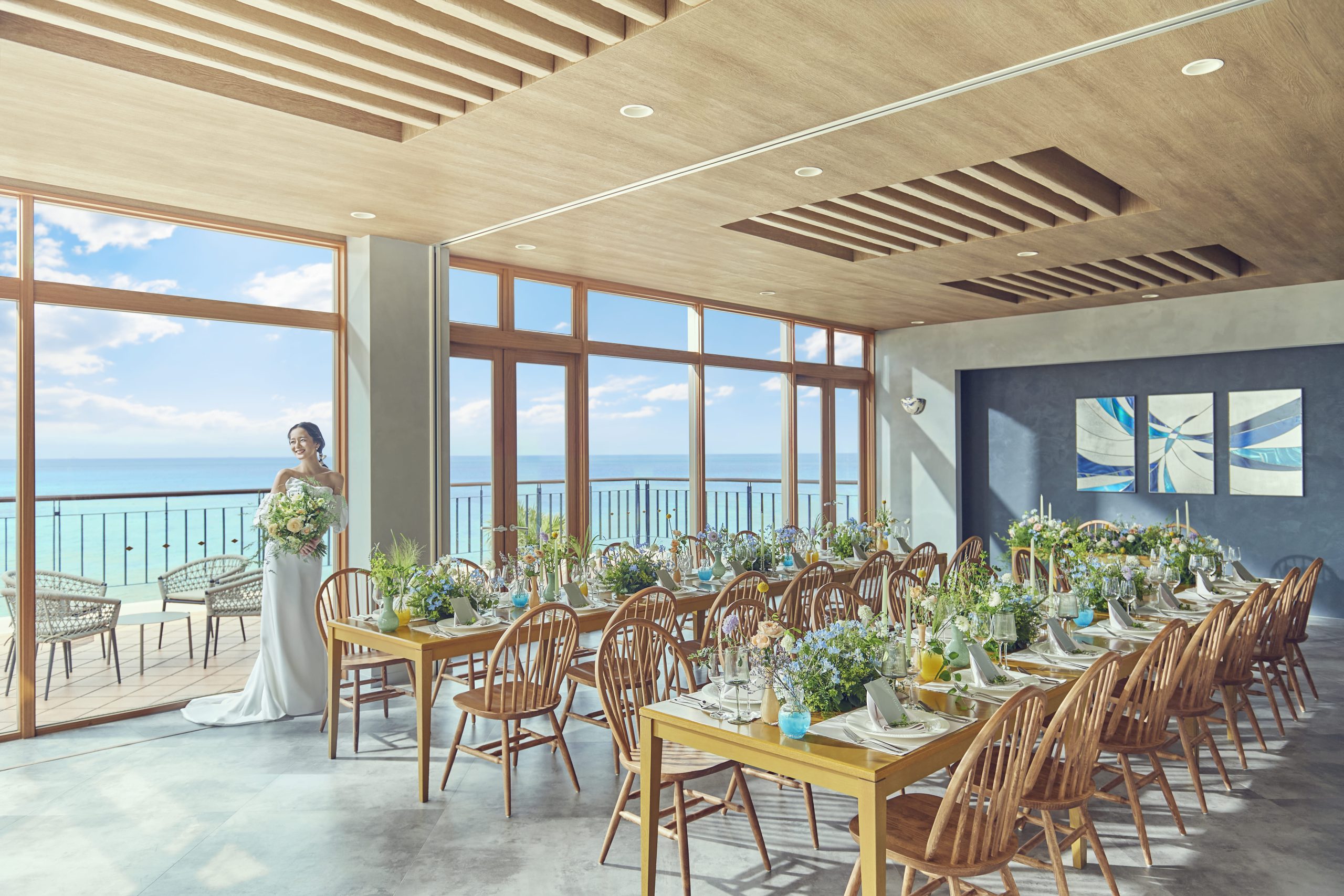 - 窓の外に広がる海の景色を満喫しながら、ゲストと楽しむパーティを