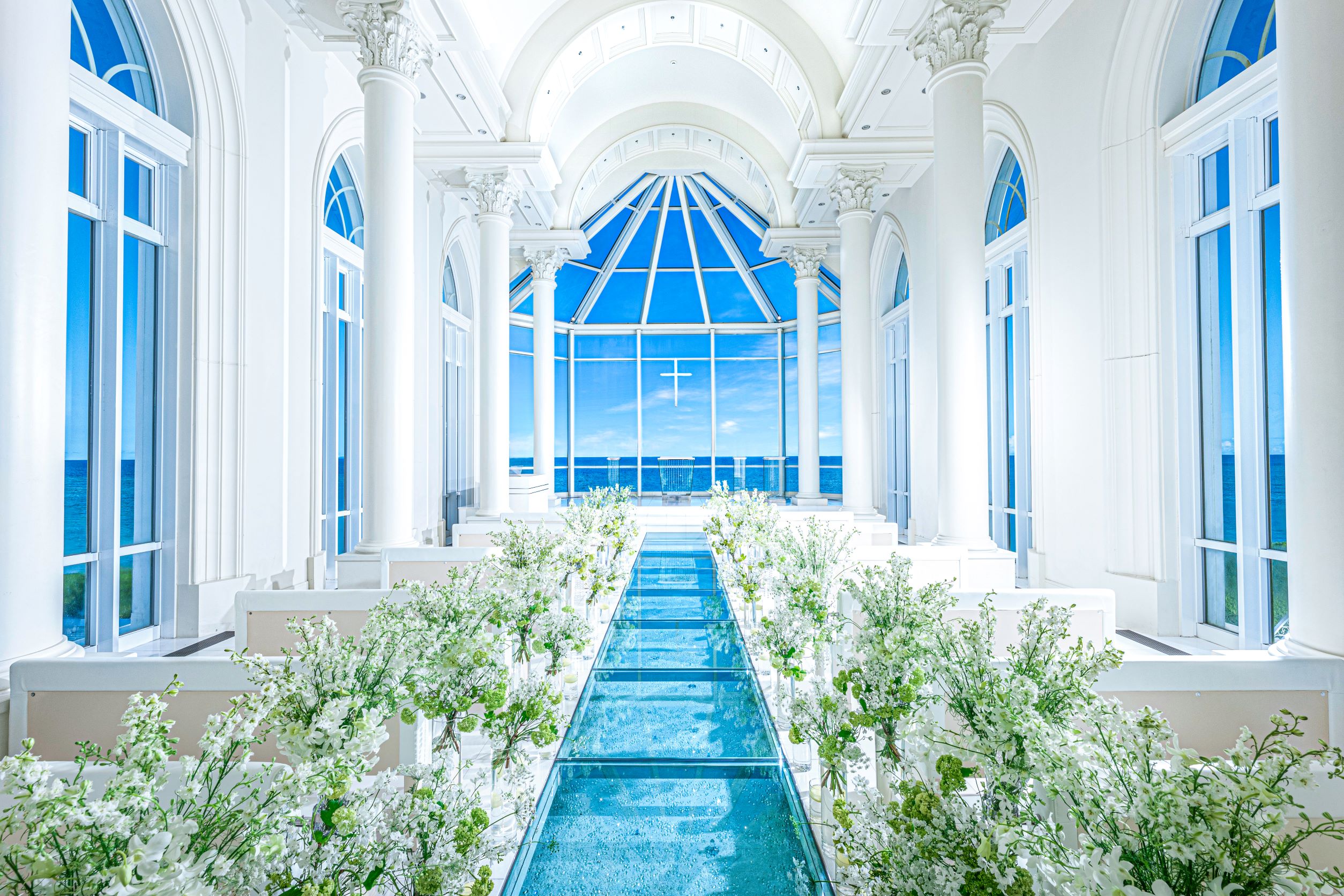 • 海に浮かぶガラスの礼拝堂『クリスティア教会』で感動の挙式