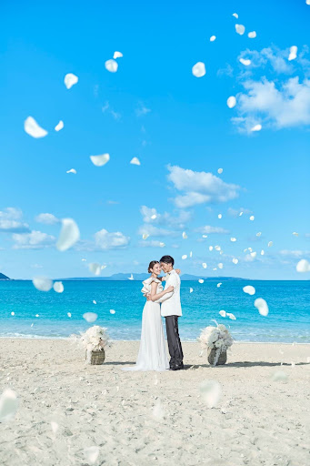 얀바루의 바다를 앞에 두고 진행되는 비치 웨딩.
