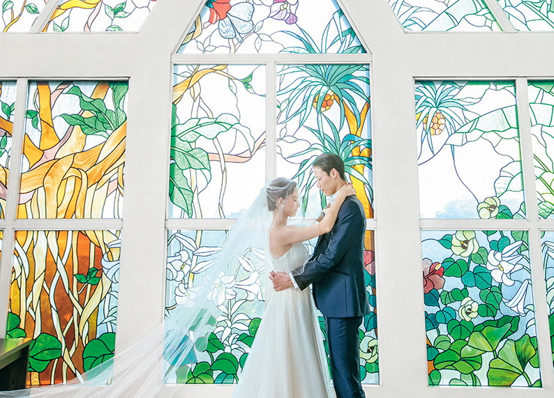 화려한 스테인드글라스가 인상적인 독립형 채플에서 맺는 서약