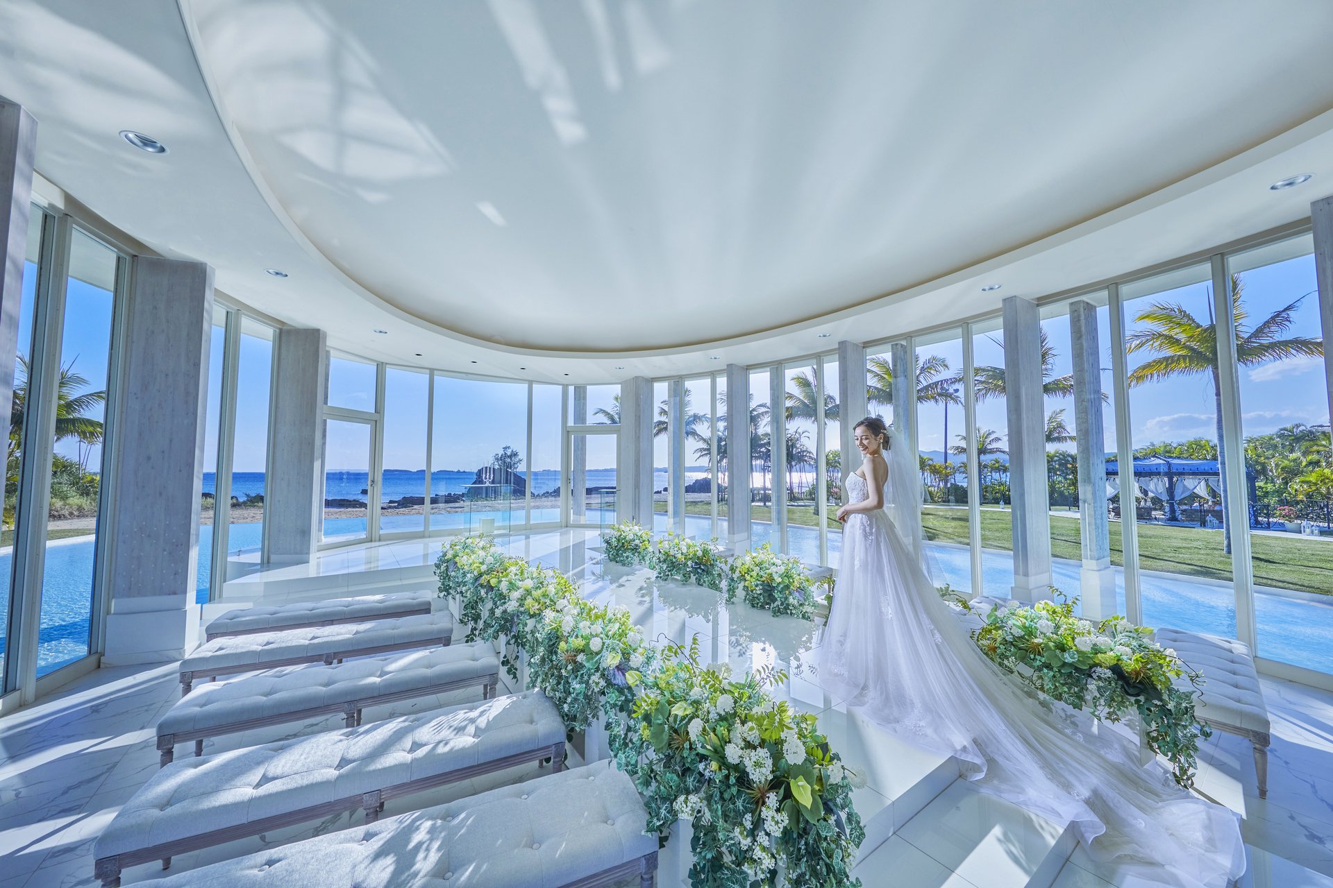 오키나와에서도 드문 360도 유리로 둘러싸인, 빛으로 가득한 순백의 세계.