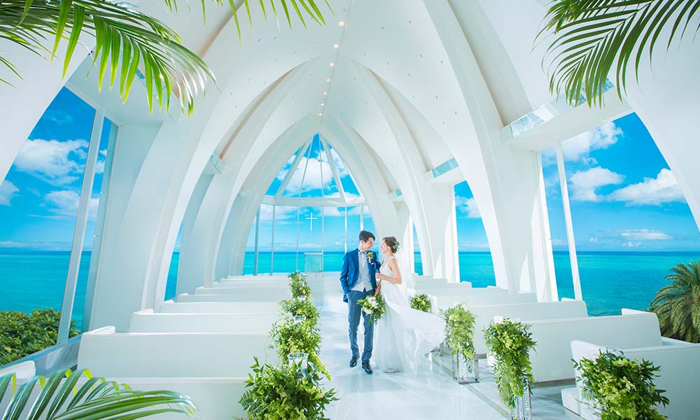 감동적인 마린 뷰에 둘러싸인 순백의 채플.