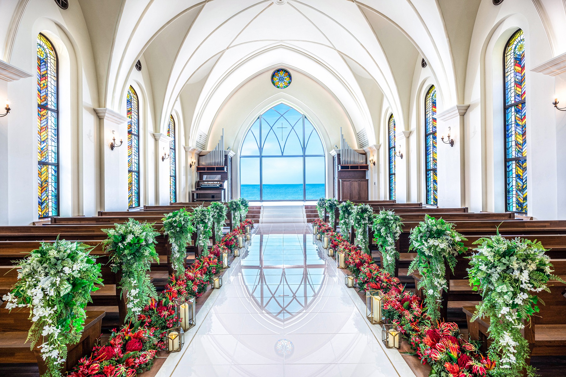 오키나와에서도 손꼽히는 아름다운 바다에 둘러싸인 채플과 가든에서,