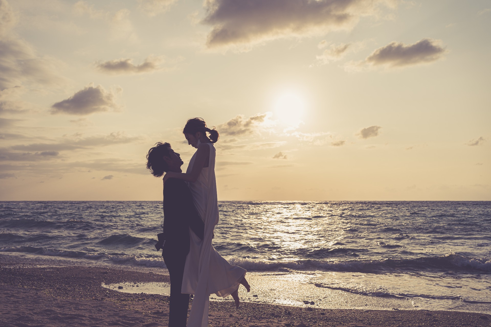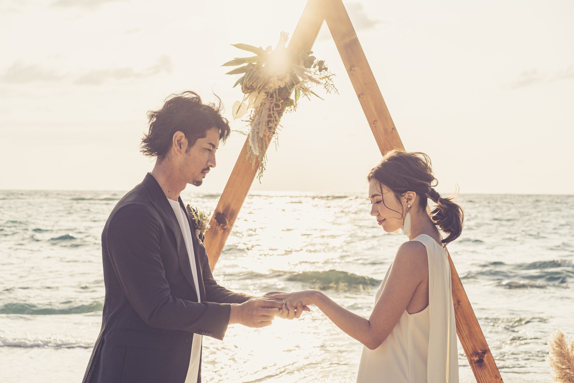 영원히 이어지는 파도 소리를 들으며, 아무도 없는 해변에서의 조용한 예식.