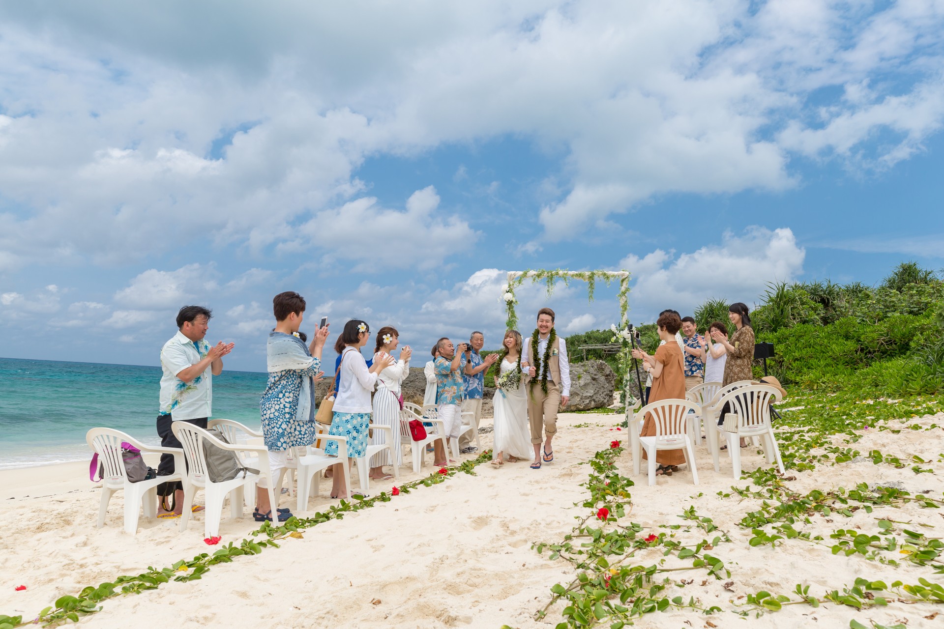- 青い海と白い砂浜で親愛なる皆様に見守られながらのビーチ挙式
