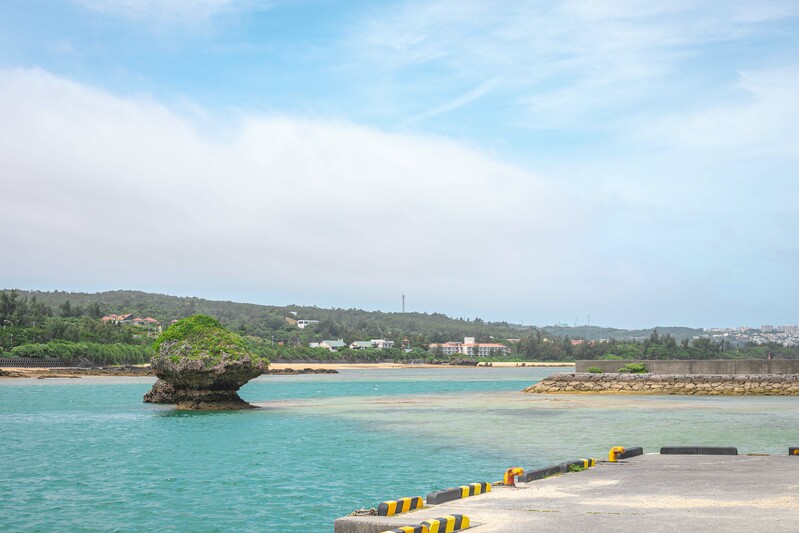 평평하게 이어진 방파제 위로 산책하기 좋으며, 맑은 날엔 왼쪽으로 요미탄의 잔파곶을 바라볼 수 있고, 눈앞에는 맑고 푸른 바다가 펼쳐집니다.