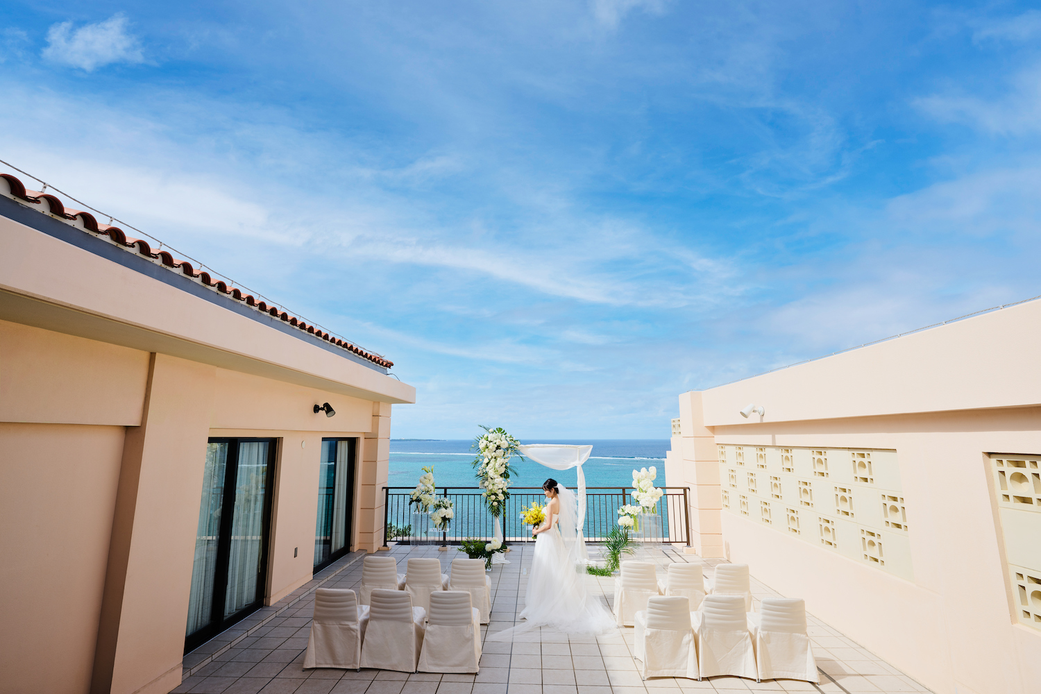 恩納村の碧い海 青い空に囲まれて自然の中で誓い合う Beach side ・ Terrace Ceremony