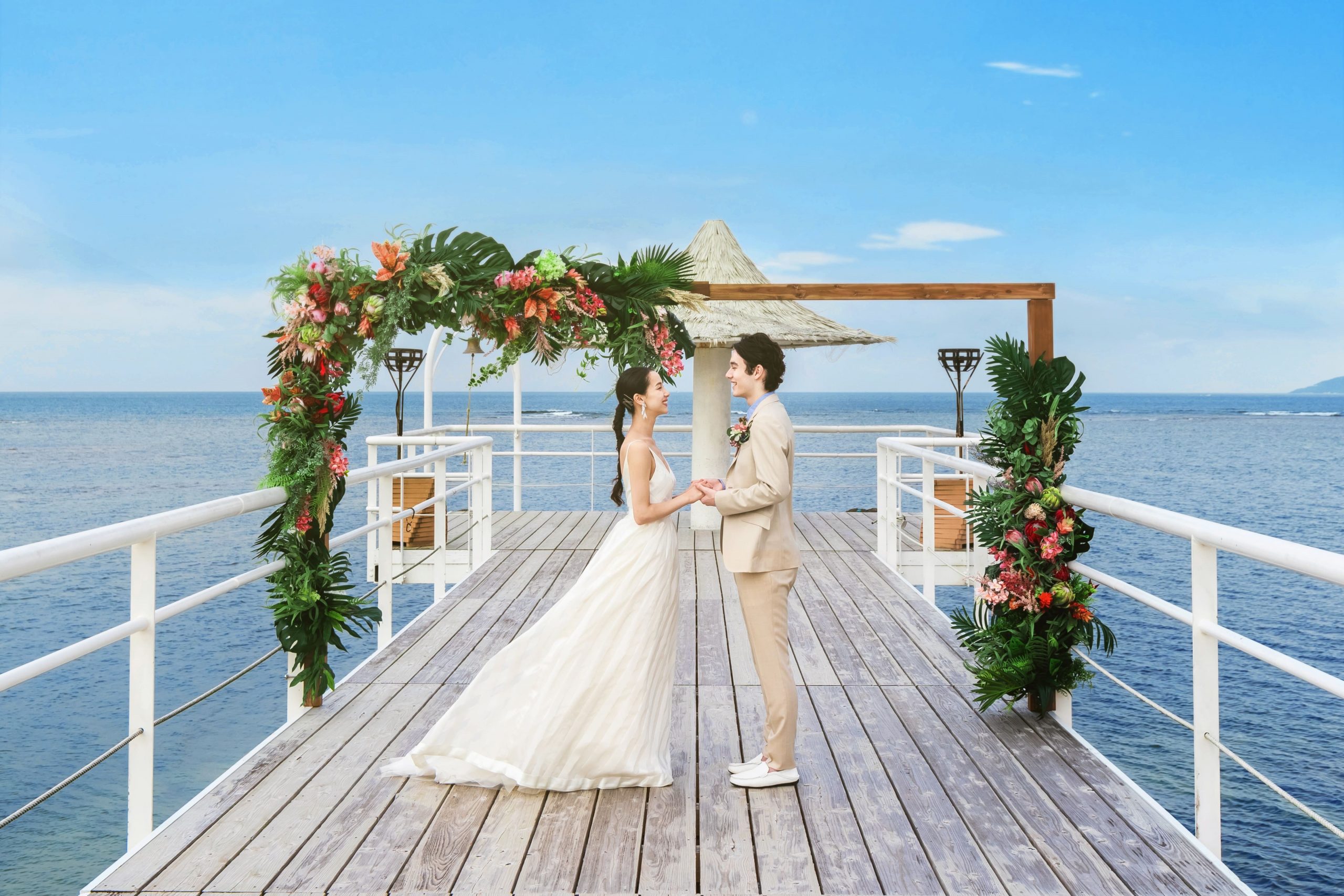 空と海と太陽に抱かれたカップルの聖地「Fusaki Angel Pier」。ここにしかない抜群のロケーションでセレモニーを。