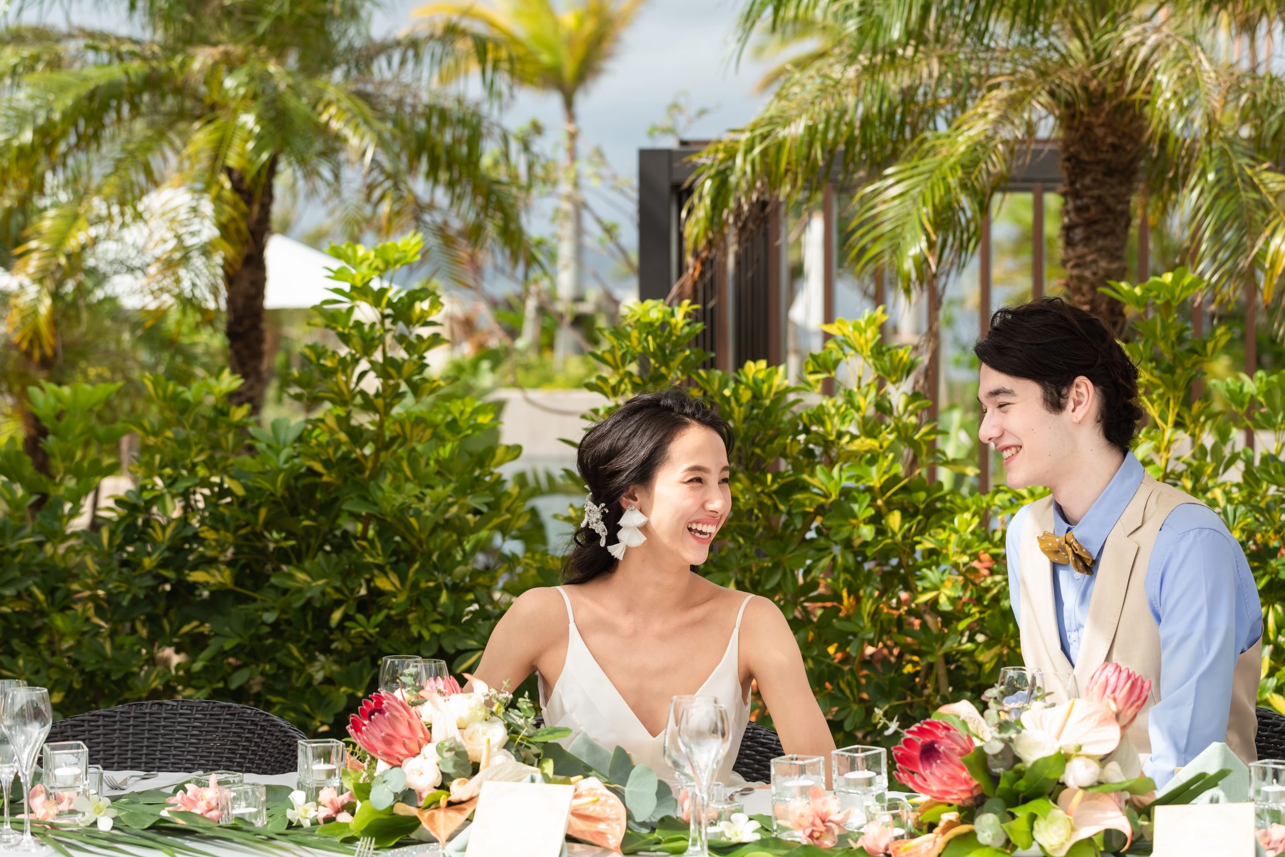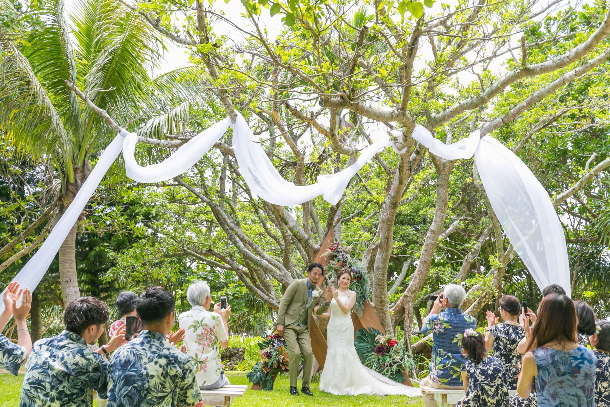 石垣島の爽やかな風を感じながら、大自然のエネルギーやパワーが宿る樹木に見守られ愛を誓うガーデンウエディングは、おふたりとゲストの一生の想い出に。