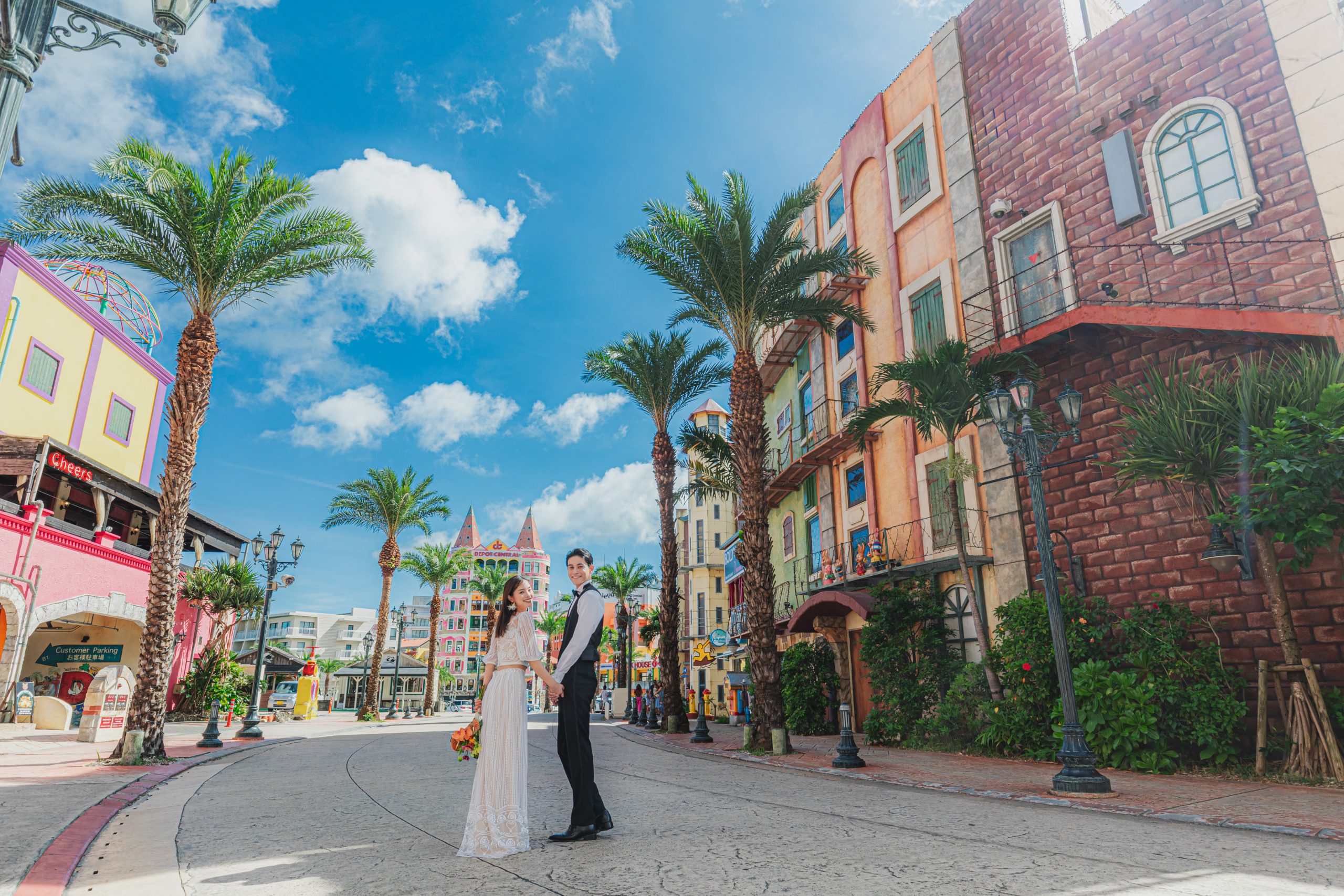 青空のもと楽しい雰囲気でのビーチ撮影やボタニカルな雰囲気たっぷりのガーデン撮影、アメリカンヴィレッジでの撮影、サンセットタイムにはロマンチックな雰囲気の撮影など様々なタイプのお写真を楽しみいただけます。
